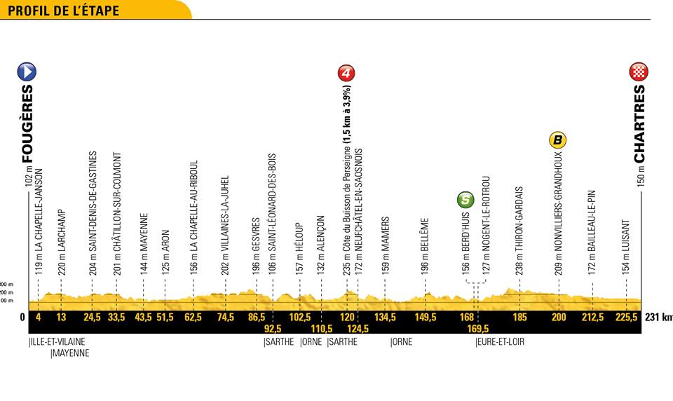 Čas pro spurt. Peleton už vydržel pohromadě až do cílového města Chartres, týmy chystaly pozice pro své sprintery a další borce, kteří měli naději na úspěch ve finiši. Ten nebyl úplně rovinatý, nýbrž nabídl mírné stoupání. Nejlépe ho zvládl Groenewegen z LottoNL-Jumbo.