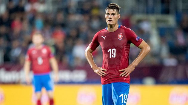 Český útočník Patrik Schick během utkání Ligy národů s Ukrajinou.