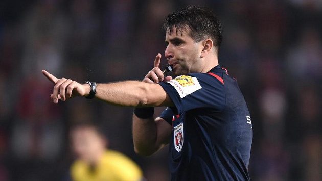 Rozhodčí Jan Jílek během Plzně se Spartou.