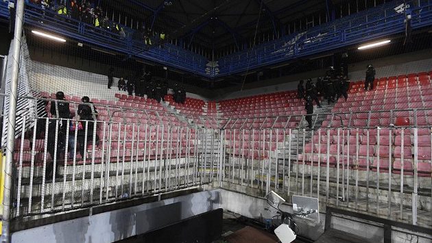 Policie na Spartě řešila problemy s plzeňskými fanoušky.