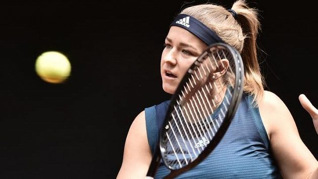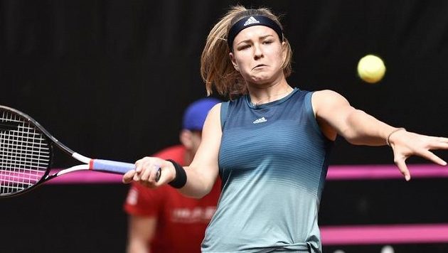 Česká tenistka Karolína Muchová v utkání s Rebeccou Marinovou z Kanady.