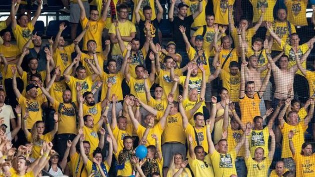 Fanoušci Opavy během utkání na Spartě.