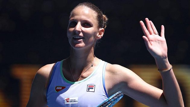 Česká tenistka Karolína Plíšková zdraví fanoušky po výhře v úvodním kole Australian Open.