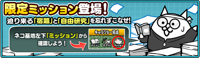 - 限定ミッション「夏休みの宿題」「夏休みの自由研究」が登場!