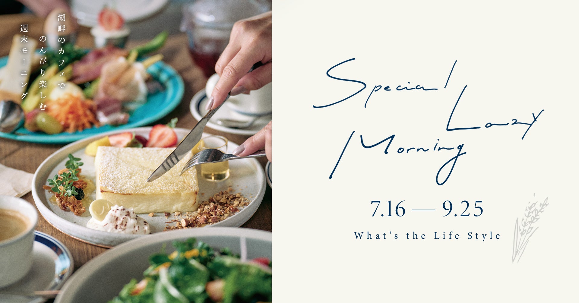 What's The Life Style が新たにスタートする "湖畔のカフェでのんびり楽しむ週末モーニング"。