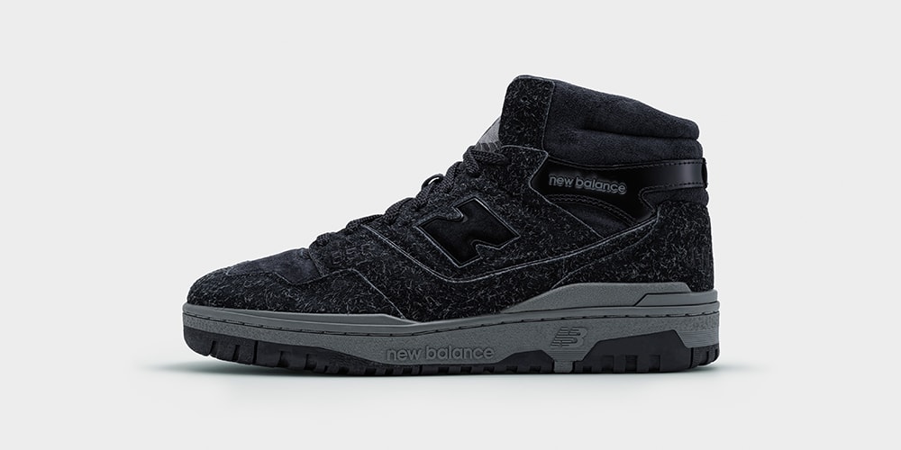 〈New Balance〉は1989年、衝撃吸収性とクッション性を特徴としたバスケットボール競技用シューズとしてPRIDE 650(ハイカット)、PRIDE 645(ミッドカット)、PRIDE 550(ローカット)の3型を発表した。今回のコラボレーションでは、このうち650を復刻し、〈Junya Watanabe MAN〉仕様にアップデート。一貫して黒で統一したパーツや素材の集合体で表現された2023年秋冬コレクションに合わせ、フットウェアの各パーツをさまざまな異なる黒の素材でパッチワークのように仕立てているのが大きな特徴だ。
